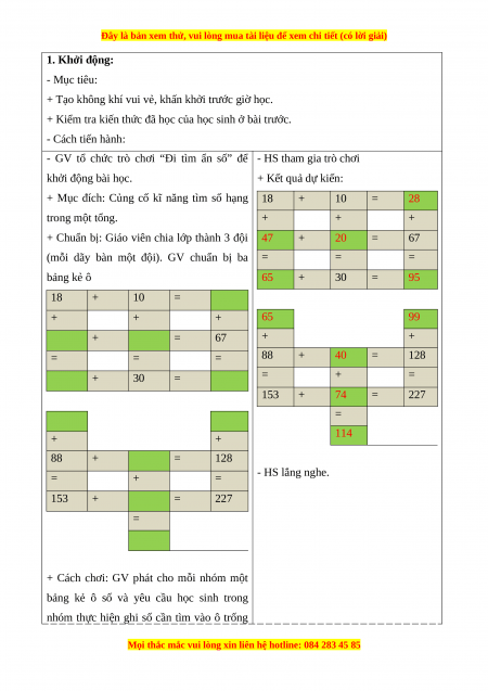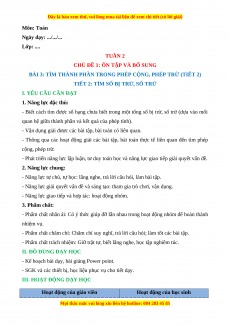 - Thông qua các hoạt động giải các bài tập, bài toán thực tế liên quan đến tìm phép cộng, phép trừ.