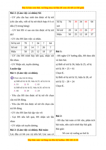 "#:@“Muốn tìm số trừ, ta lấy số bị trừ