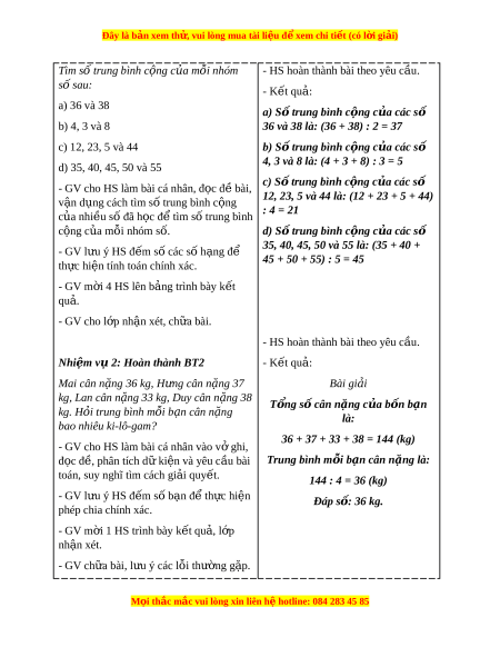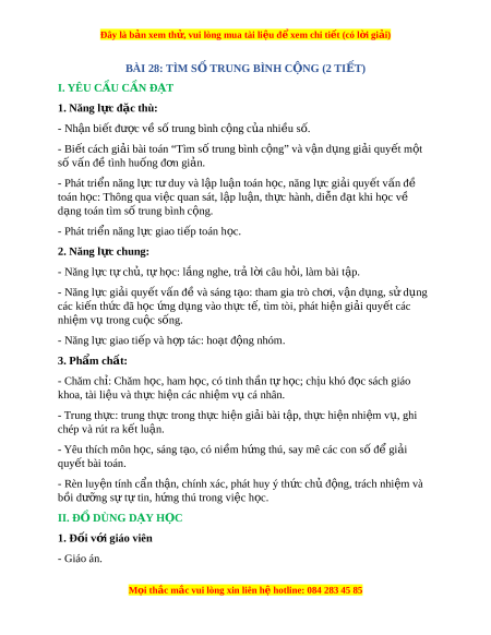 Đây là bản xem th , vu ử i lòng mua tài li u ệ đ xe ể m chi ti t (c ế ó l i ờ gi i ả ) BÀI 28: TÌM S Ố TRUNG BÌNH C N Ộ G (2 TI T Ế )