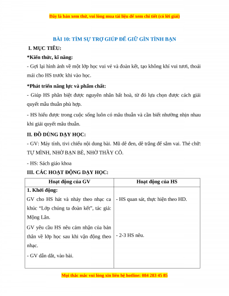 BÀI 10: TÌM SỰ TRỢ GIÚP ĐỂ GIỮ GÌN TÌNH BẠN I. MỤC TIÊU:
