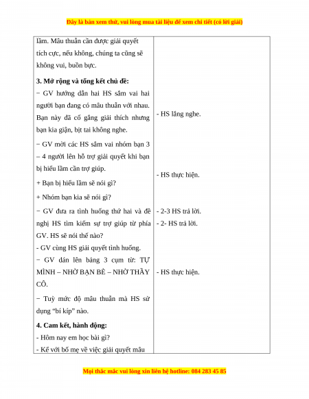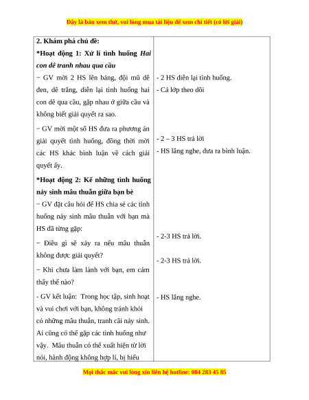 - Giúp HS phân biệt được nguyên nhân bất hoà, từ đó lựa chọn được cách giải