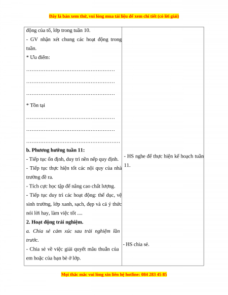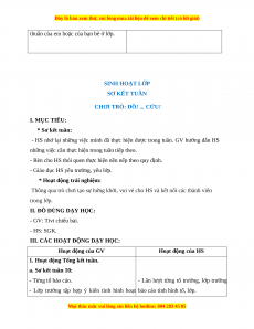 thuẫn của em hoặc của bạn bè ở lớp. SINH HOẠT LỚP SƠ KẾT TUẦN