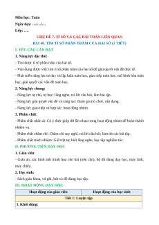 BÀI 40. TÌM TỈ SỐ PHẦN TRĂM CỦA HAI SỐ (2 TIẾT)