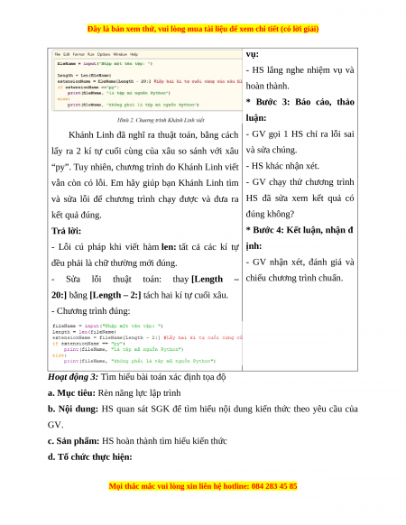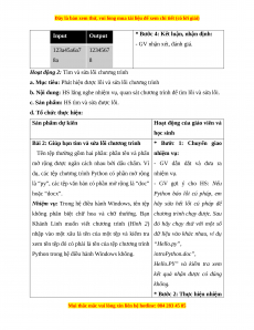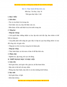 - Phòng máy thực hành, máy tính có cài sẵn chương trình Python. 2. Học sinh - Sách giáo khoa, vở ghi. - Kiến thức đã học.