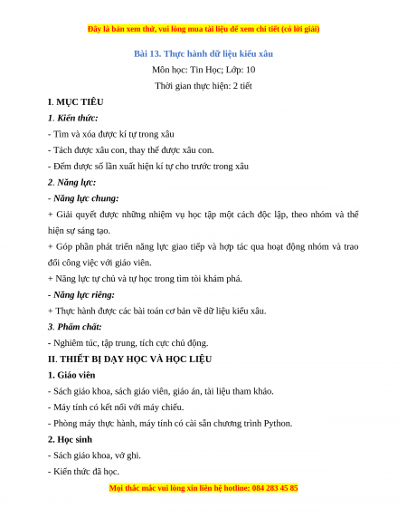 Giáo án Tin học 10 Bài 13 (Cánh diều): Thực hành dữ liệu kiểu xâu