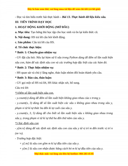- Đọc và tìm hiểu trước bài thực hành – Bài 13. Thực hành dữ liệu kiểu xâu.