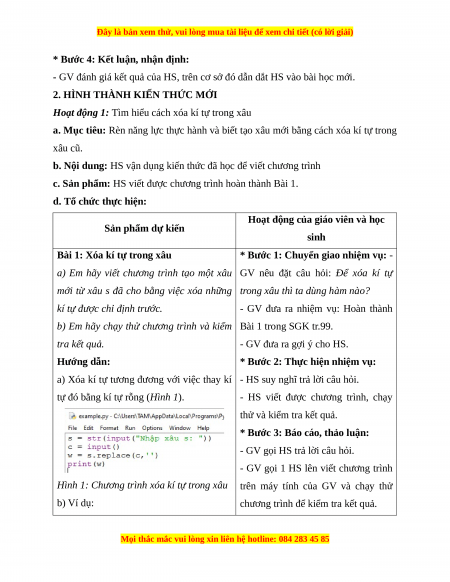 a. Mục tiêu: Rèn năng lực thực hành và biết tạo xâu mới bằng cách xóa kí tự trong xâu cũ.