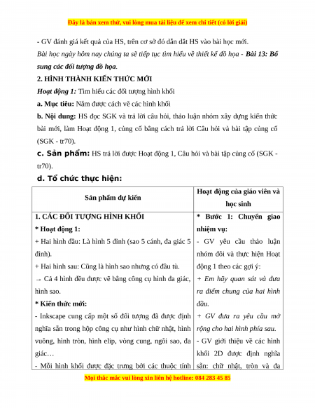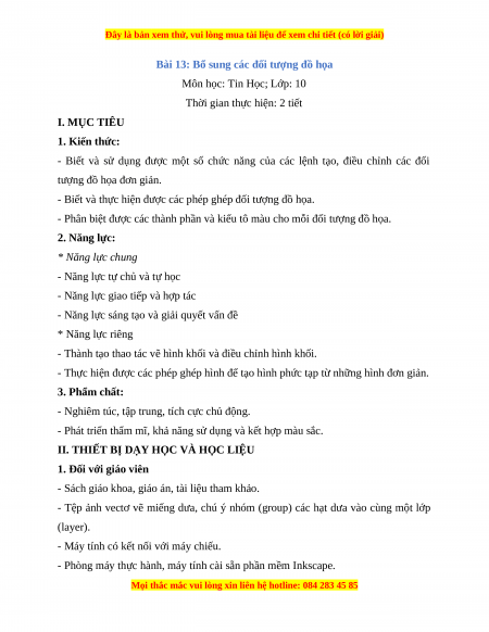 Giáo án Tin học 10 Bài 13 (Kết nối tri thức): Bổ sung các đối tượng đồ họa