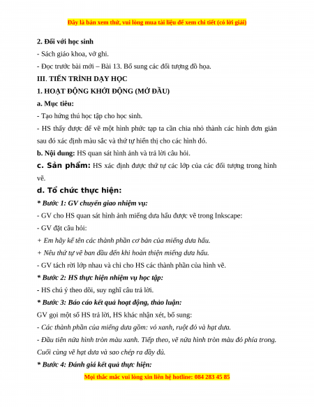 - GV cho HS quan sát hình ảnh miếng dưa hấu được vẽ trong Inkscape: - GV đặt câu hỏi: