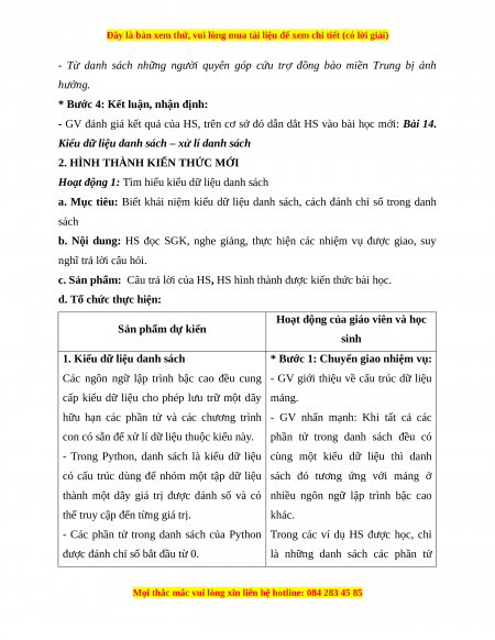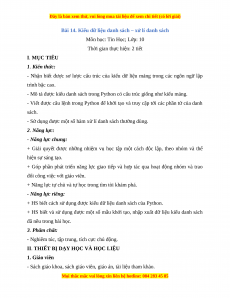 Giáo án Tin học 10 Bài 14 (Cánh diều): Kiểu dữ liệu danh sách – xử lí danh sách