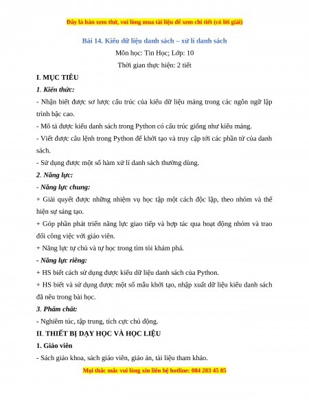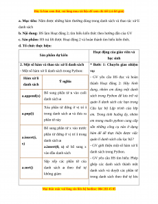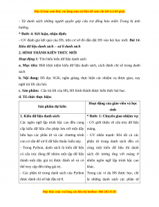 + HS biết cách sử dụng được kiểu dữ liệu danh sách của Python.