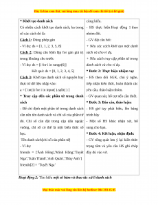 - Các phần tử trong danh sách của Python Trong các ví dụ HS được học, chỉ