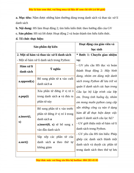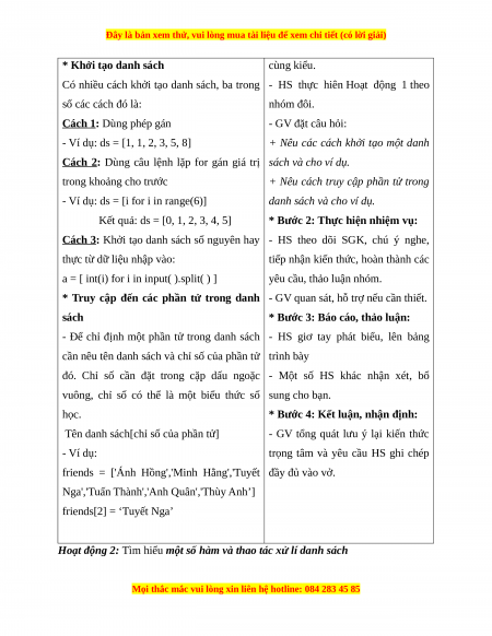 Hoạt động 2: Tìm hiểu một số hàm và thao tác xử lí danh sách