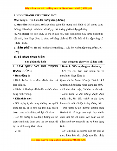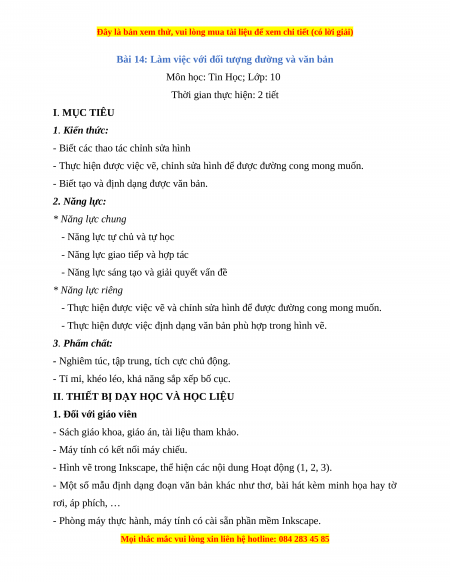 Giáo án Tin học 10 Bài 14 (Kết nối tri thức): Làm việc với đối tượng đường và văn bản