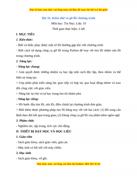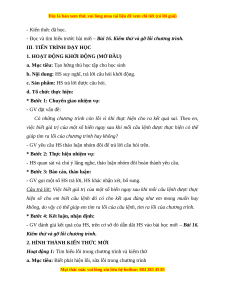 - Đọc và tìm hiểu trước bài mới – Bài 16. Kiểm thử và gỡ lỗi chương trình.