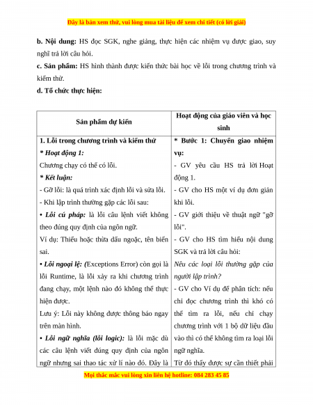 c. Sản phẩm: HS hình thành được kiến thức bài học về lỗi trong chương trình và kiểm thử.