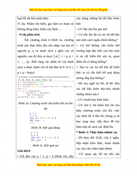 Hoạt động 1: Tìm hiểu lỗi trong chương trình và kiểm thử