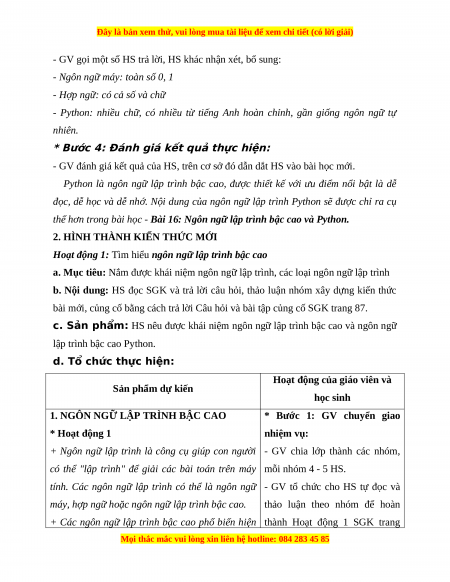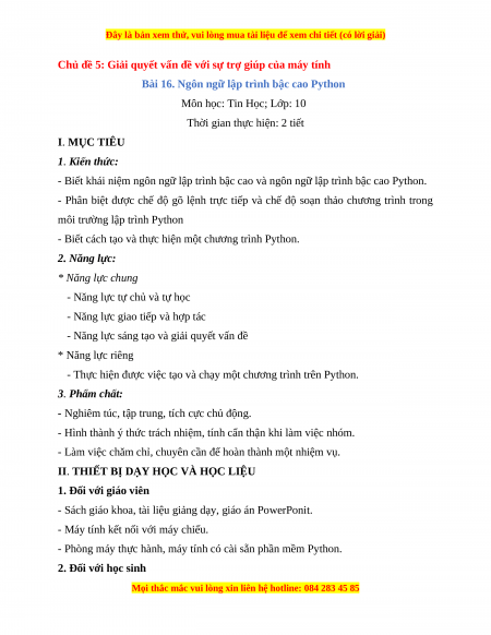 Giáo án Tin học 10 Bài 16 (Kết nối tri thức): Ngôn ngữ lập trình bậc cao Python