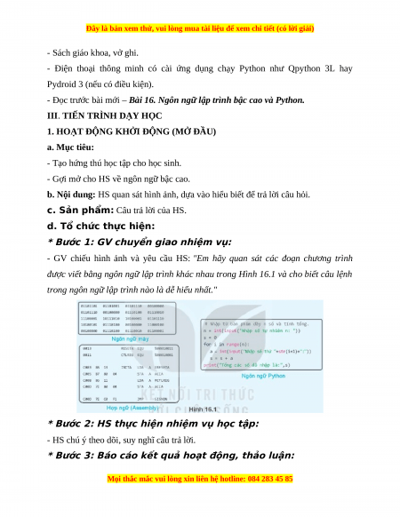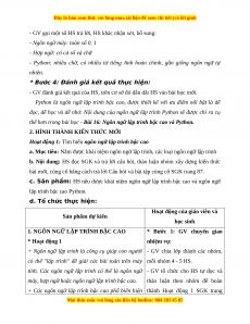 - Lập trình bằng ngôn ngữ bậc cao: các câu lệnh - GV giới thiệu cho HS: Python