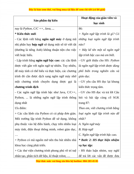 nay là Python, C/C ++, Java, ... 86: * Kiến thức mới