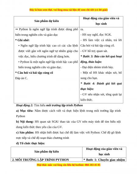 Hoạt động 2: Tìm hiểu môi trường lập trình Python