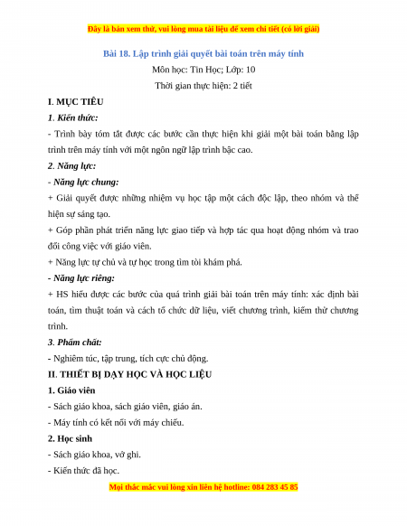 Bài 18. Lập trình giải quyết bài toán trên máy tính