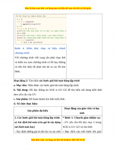 Hoạt động 1: Tìm hiểu quá trình giải một bài toán bằng lập trình