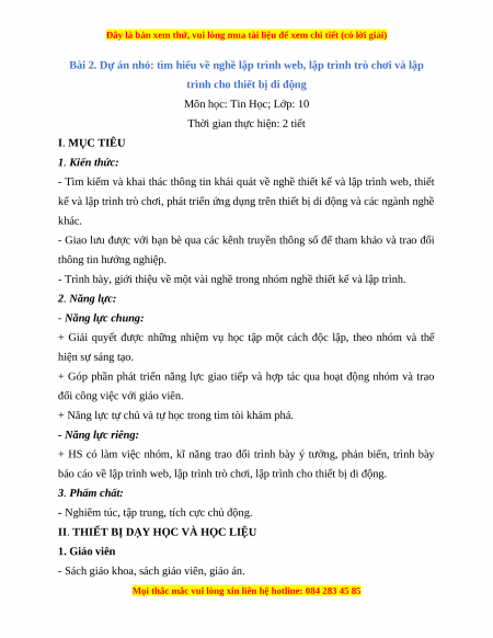 Giáo án Tin học 10 Bài 2 (Cánh diều): Dự án nhỏ: tìm hiểu về nghề lập trình web, lập trình trò chơi và lập trình cho thiết bị di động