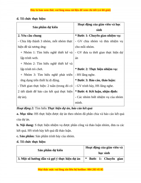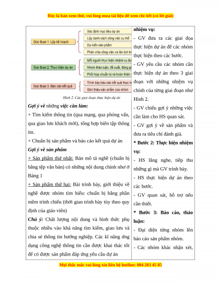 - Hỗ trợ HS làm dự án nếu thấy cần thiết. 2. Học sinh - Sách giáo khoa, vở ghi. - Kiến thức đã học.