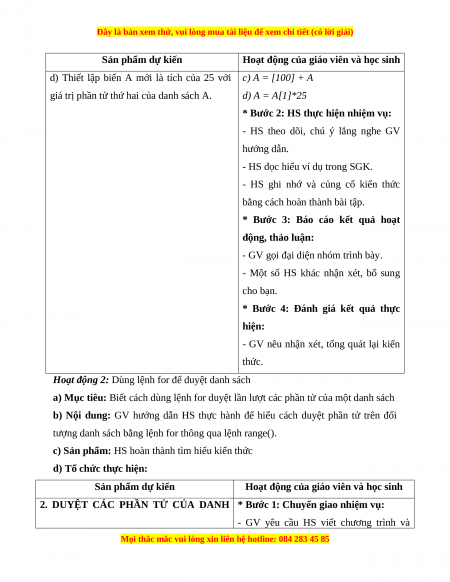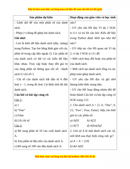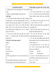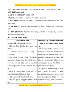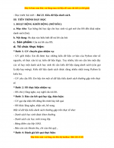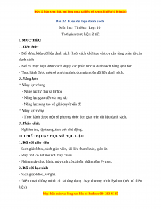 - Thực hành được một số phương thức đơn giản trên dữ liệu danh sách. 2. Năng lực: * Năng lực chung