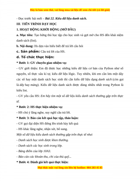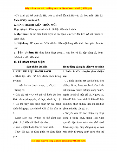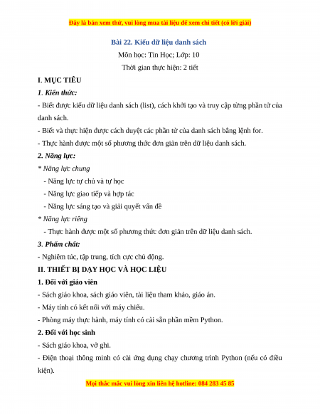 Giáo án Tin học 10 Bài 22 (Kết nối tri thức): Kiểu dữ liệu danh sách
