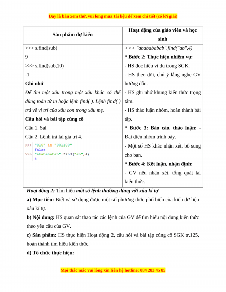 đôi và hoàn thành Câu hỏi và bài tập . find(, start) củng cố SGK tr.124: