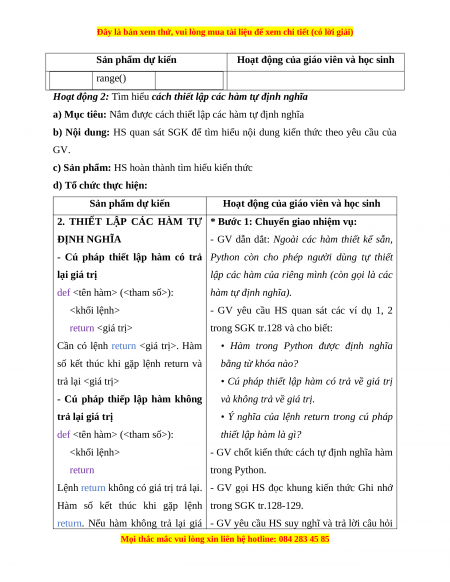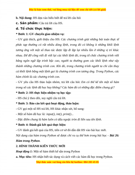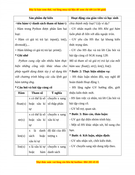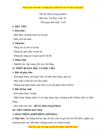 Giáo án Tin học 10 Bài 26 (Kết nối tri thức): Hàm trong python