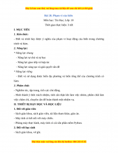 - Biết và trình bày được ý nghĩa của phạm vi hoạt động của biến trong chương trình và hàm. 2. Năng lực: * Năng lực chung