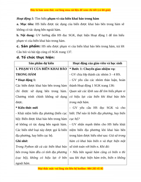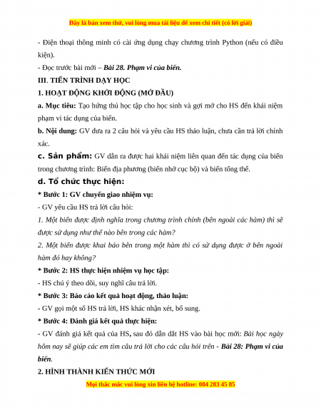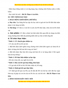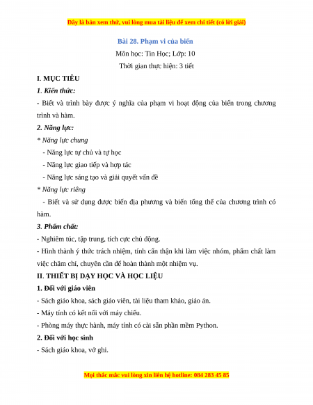 Giáo án Tin học 10 Bài 28 (Kết nối tri thức): Phạm vi của biến