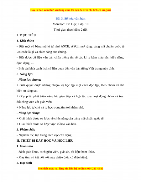 Giáo án Tin học 10 Bài 3 (Cánh diều): Số hóa văn bản