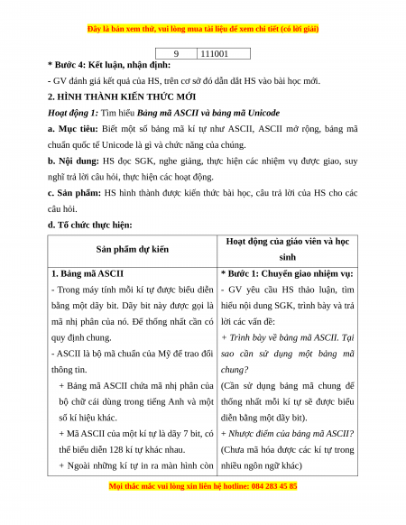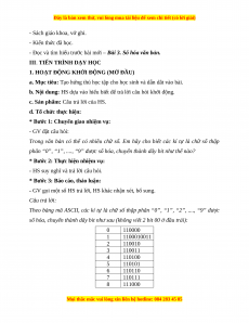 + Bảng mã ASCII chứa mã nhị phân của (Cần sử dụng bảng mã chung để