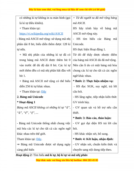Hoạt động 1: Tìm hiểu Bảng mã ASCII và bảng mã Unicode