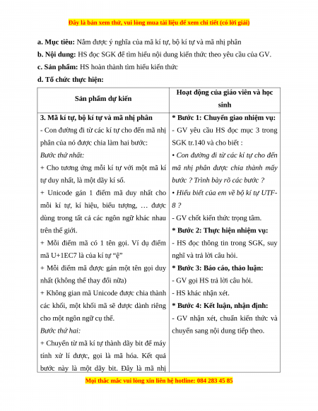 a. Mục tiêu: Nắm được ý nghĩa của mã kí tự, bộ kí tự và mã nhị phân