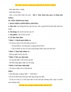 - Phòng máy thực hành, máy tính cài sẵn phần mềm Python. 2. Học sinh