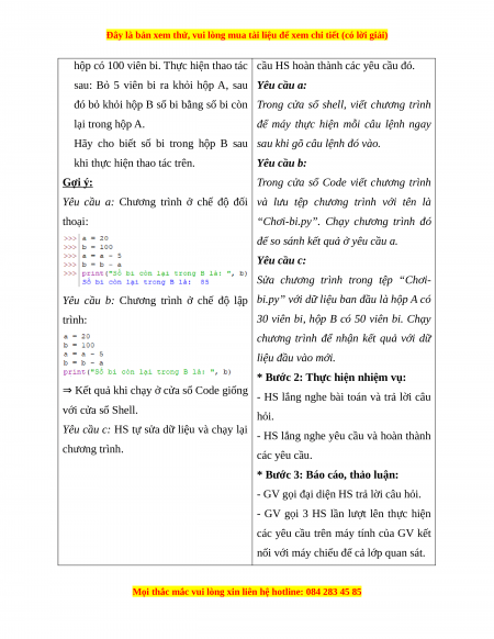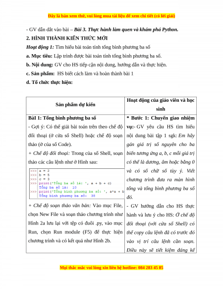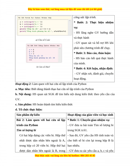 Bàì 2: Làm quen với hai cửa sổ lập * Bước 1: Chuyển giao nhiệm vụ: trình của Python