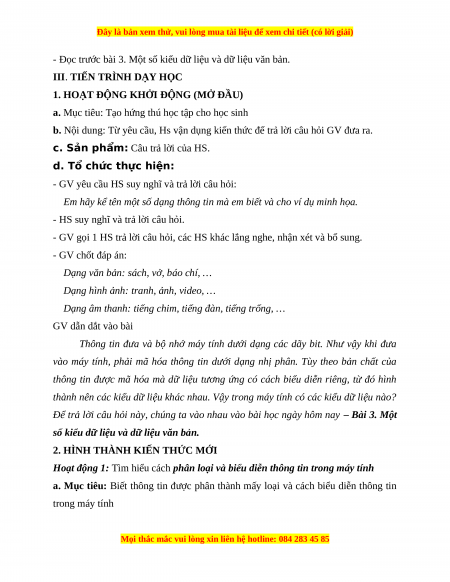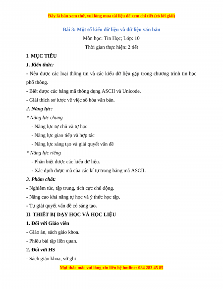 Giáo án Tin học 10 Bài 3 (Kết nối tri thức): Một số kiểu dữ liệu và dữ liệu văn bản