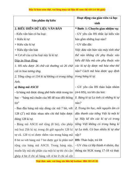 - Xác định được mã của các kí tự trong bảng mã ASCII.