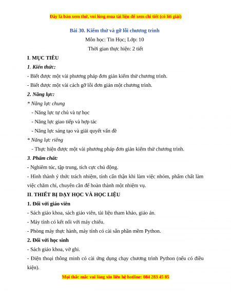 trình - Bài 30. Kiểm thử và gỡ lỗi chương trình.