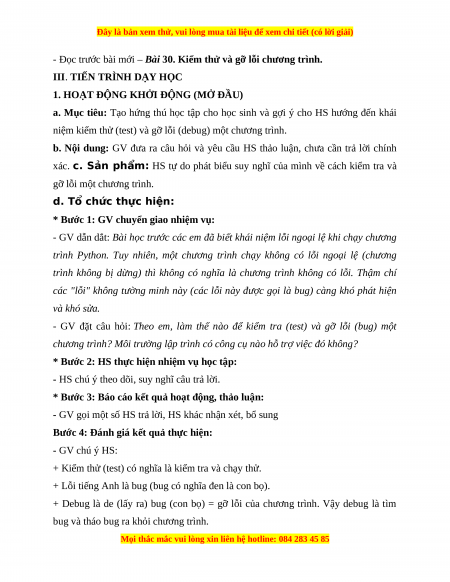 - Đọc trước bài mới – Bài 30. Kiểm thử và gỡ lỗi chương trình.