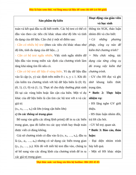 toán và kết quả đầu ra đã biết trước. Các bộ test có thể có thông tin SGK, thảo luận