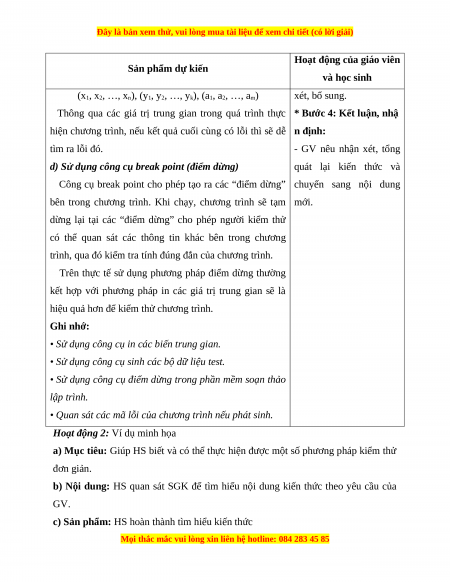 Hoạt động 1: Tìm hiểu một số phương pháp kiểm thử chương trình