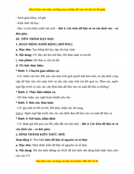- Đọc và tìm hiểu trước bài mới – Bài 4. Các kiểu dữ liệu số và câu lệnh vào – ra đơn giản.