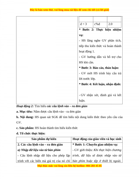 Hoạt động 2: Tìm hiểu các câu lệnh vào – ra đơn giản