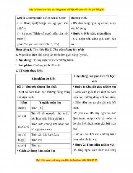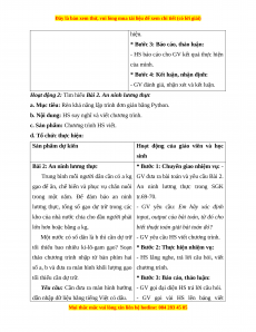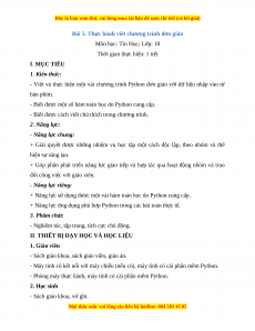 - Phòng máy thực hành, máy tính có cài phần mềm Python. 2. Học sinh - Sách giáo khoa, vở ghi.